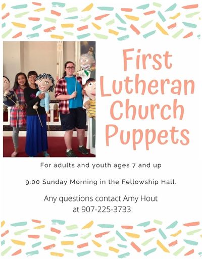 The First Lutheran Church Puppets is a very popular program for children and adults alike. Many Sunday services include a delightful, inspiring, musical message from the puppeteers.